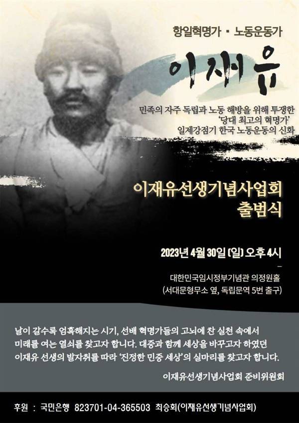 | ▲ 출범식 포스터 이재유기념사업회 출범식을 알리는 포스터 |