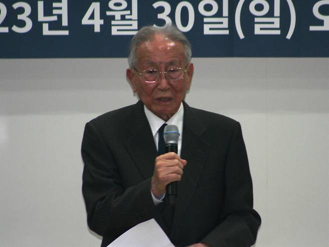 | ▲ 박중기 이사장 축사 이재유기념사업회 출범식에서 박중기 추모연대 이사장이 축사를 하고 있다. |