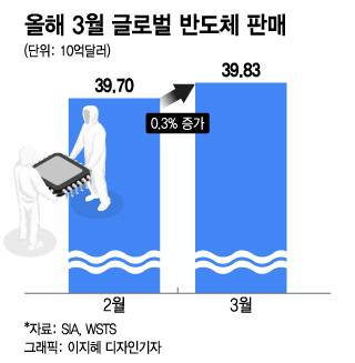 올해 하반기 글로벌 반도체 판매가 반등할 것이란 전망에 힘을 싣는 낙관론이 나왔다. 올해 3월 전세계 반도체 판매가 10개월만에 전분기 대비 늘어난 것으로 집계되면서 하반기 업턴에 대한 기대를 키운다는 분석이다.