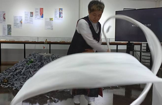 | ▲ 양혜경씨의 넋전춤 '거짓말' 공연 2023 제2회 노동예술제는 미래를 위해 과거에서 잊어버린 소중한 가치를 찾아 조명해 보는 장으로 진행됐다. 사진은 양혜경씨의 넋전춤 '거짓말' 공연. |