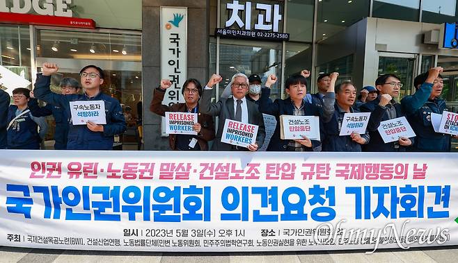 - [오마이포토2023] 건설노조 탄압 규탄하는 국제건설목공노련 대표자들
