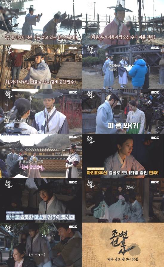 우도환과 김지연, 차학연은 저잣거리에서 만났다. 우도환은 김지연이 핫팩을 챙겨주자 “메이킹 서 있다고 그러지 마라”며 장난을 주고받았고, 차학연과는 쉬는 시간에도 캐릭터에 과몰입하며 재미를 더했다.