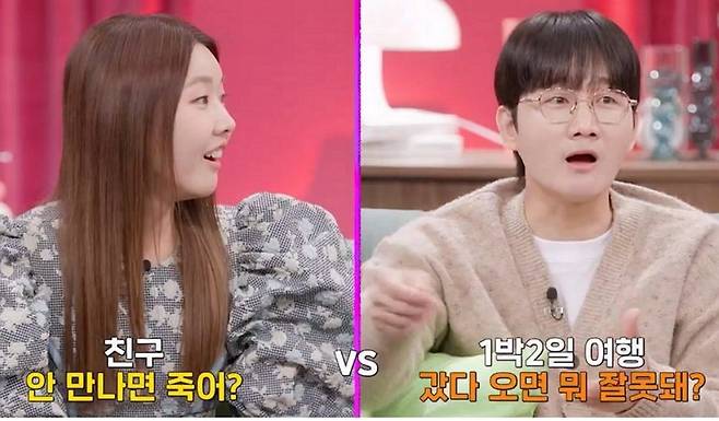 [TV리포트=이수연 기자] 이용진과 한혜진이 '애인이 이성과 함께 떠나는 여행, 괜찮은가?'를 두고 입장이 갈렸다.