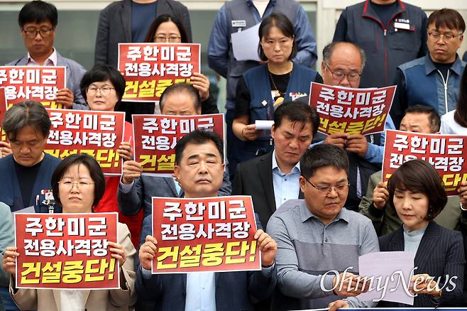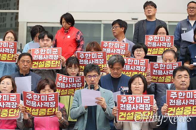 '주한미군 전용 사격장 건설 중단 및 폐쇄 창원대책위'(아래 창원대책위)가 4일 오전 경남 창원특례시청 현관 앞에서 기자회견을 열어 이같이 촉구했다.