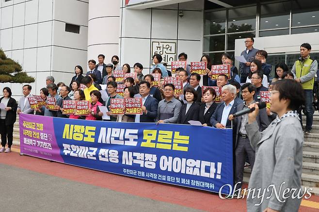 하춘수 신부(천주교)는 "팔용동에 주한미국 사격장이 있다는 말을 듣고 깜짝 놀랐다. 이곳은 도심 한 복판이다. 주한미군 군사시설 공사를 하고 있다는 사실에 놀랍다"며 "전쟁이 끝난 지 70년이 지났는데 아직도 폭약과 탄약을 끌어안고 살아야 하느냐. 시민 안전에 동참해 달라"고 강조했다.