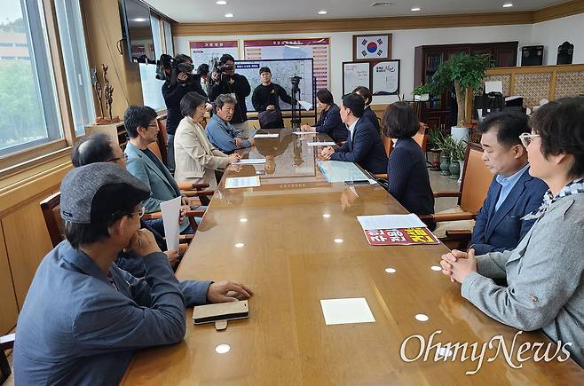 | ▲ '주한미군 전용 사격장 건설 중단 및 폐쇄 창원대책위' 대표들은 4일 창원시청에서 하종목 제1부시장을 면담했다. |