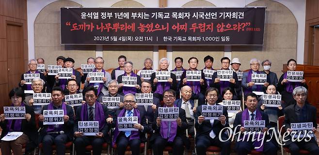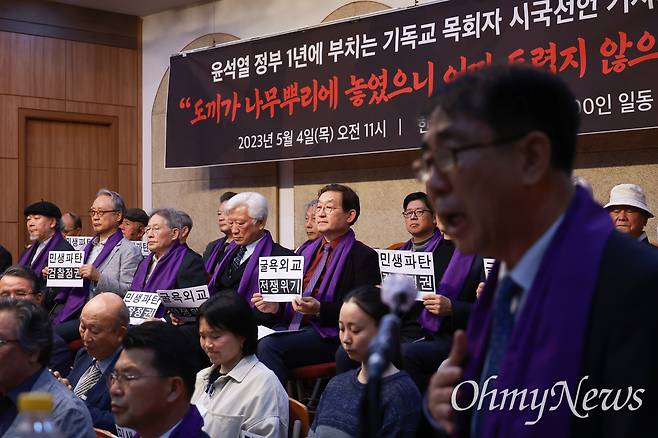 | ▲ '윤석열 정부 1년에 부치는 기독교 목회자 1천인 시국선언‘이 4일 오전 서울 종로 5가 기독교회관 조예홀에서 열렸다. |