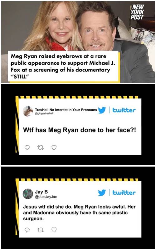 한 팬은 "멕 라이언이 얼굴에 무슨 짓을 한 거야?"라고 물었고, 다른 팬은 “이게 지금 멕 라이언이야? 무슨 일이야? 맙소사”라는 반응을 보였다.