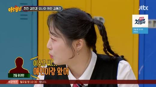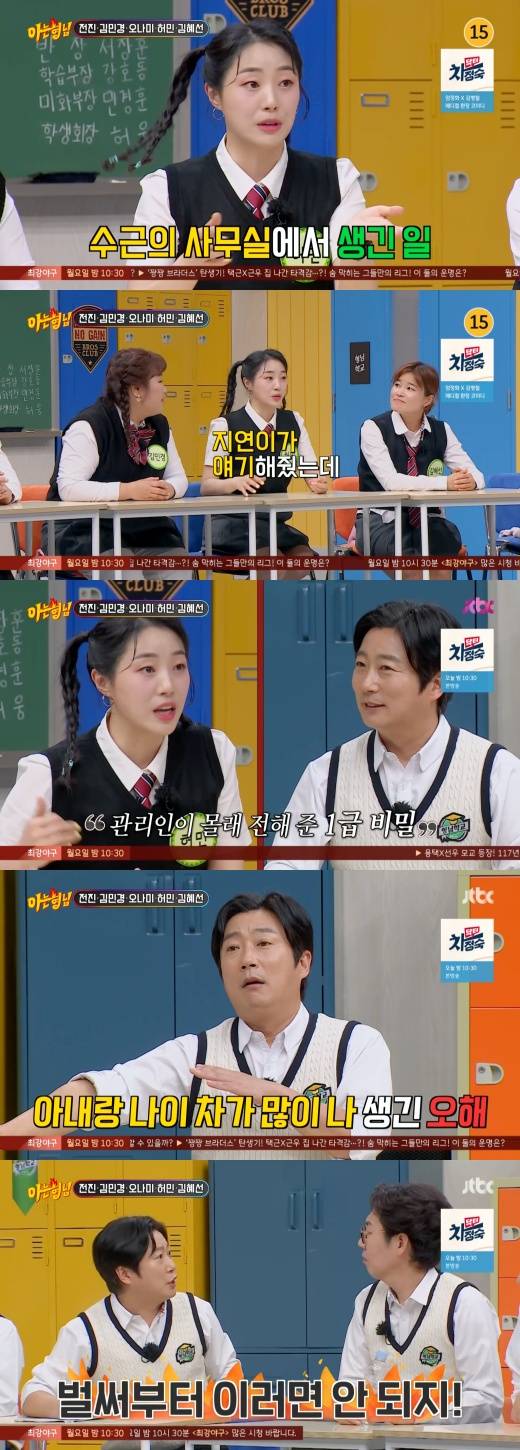 허민은 “지연이가 얘기해 줬다”라며, “선배님(이수근) 사무실에 갔는데 사무실 밑에서 관리 보시는 분이 ‘이수근 씨 애인이랑 왔다. 이수근 씨 지금 바람났다’고 했다는 거다”라고 털어놔 모두를 깜짝 놀라게 만들었다.
