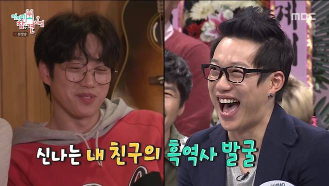 또 고영배는 권정열을 가리키며 "사람들이 그때 비 닮았다고 그랬었다. '무한도전'에 나왔는데, 살 찌기 전이었다. 그땐 말랐었다. 기가 막히게 '무도' 나왔을 때만 쪘다"며 웃어보였다.
