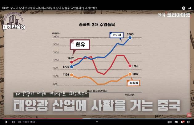 중국이 가장 많이 수입하는 제품. 지금은 반도체인데, 당시에는 석유였어요. 2011년 중국의 원유 수입액은 1967억달에 달했습니다. 중국의 대외 석유 의존도는 70%가 넘고요. 한마디로 원유 끊기면 중국은 망한다. 그런데 태양광이 원유를 대체할 에너지원으로 떠오른다? 중국은 사활을 걸고 태양광 산업에 올인합니다. 기업이 태양광 사업한다고만 하면 땅 주고, 장비 사주고, 전기도 거의 공짜로 줬어요.