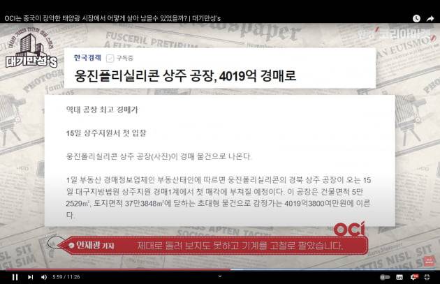 OCI는 그 해 태양광 사업 포기를 선언합니다. 근데 완전히 접는 건 아니고, 기존에 가동했던 설비가 있으니까. 이걸 말레이시아로 이전해서 여기서 하겠다. 말레이시아는 전기 요금 저렴하고 인건비도 저렴하니까. 적자는 설마 안 나겠지. 하는 심정으로 간 것 같습니다.