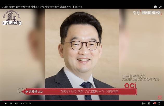 또 사업을 나눠서 기존의 석유화학 소재, 반도체용 폴리실리콘은 OCI에 주고. 이우현 부회장이 지분을 몰아서 가질 OCI홀딩스 쪽은 태양광에 집중할 것 같아요. 이렇게 하면 OCI홀딩스가 온전히 태양광 회사로 평가받고, 그럼 주가도 좀 더 오르지 않을까 하는 기대가 있습니다. 이우현 부회장은 OCI홀딩스의 회장으로 승격이 된다고도 합니다.