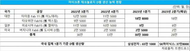 대만 유력 반도체 시장조사업체 트렌드포스에 따르면 마이크론은 올 1분기 12인치 기준 총 월 30만 3000장의 D램 웨이퍼를 생산하고 있습니다. 세계 총 D램 생산량(월 150만9000만장) 의 20% 수준입니다. 이 가운데 월 18만8000장의 웨이퍼가 대만에서 생산됩니다. 그렇다면 왜 마이크론은 대만에 주요 생산 기지를 두고 있을까. 가장 큰 이유는 과거 마이크론의 적극적인 대만 D램 제조사 '인수합병(M&A)' 때문입니다.