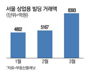 7일 부동산플래닛에 따르면 지난 3월 서울시 상업·업무용 빌딩 매매거래량은 104건으로 전월 대비 7.2% 증가했다. 눈에 띄는 상승폭은 아니지만 2월에 이어 두달 연속으로 오름세를 기록했다. 1월 거래량은 52건으로 2008년 글로벌 금융위기 당시 수준이었다.