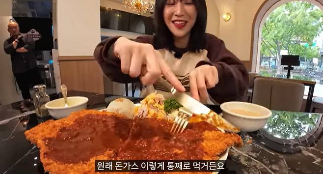 이어 쯔양은 "돈가스 크기를 궁금해하시는 분들이 계신다. 크기는 진짜 크다"며 돈가스 크기를 공개했다.