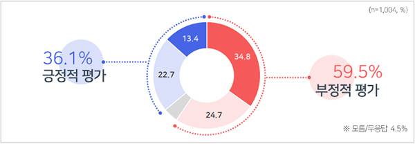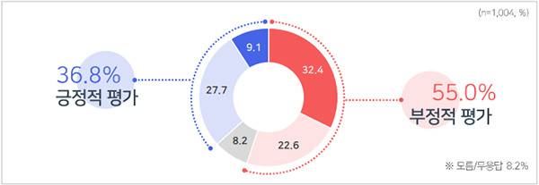 이는 지난 1월 여론조사 당시 긍정평가 37.5%와 비슷한 수준이며, 부정 평가는 4.7%p 높아졌습니다.