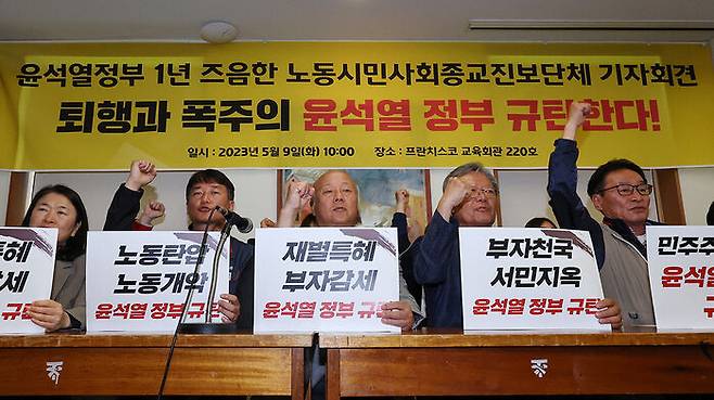 노동계와 시민단체들이 윤석열 대통령 취임 1년을 하루 앞둔 오늘(9일) 잇달아 기자회견을 열고 정부 정책을 비판했습니다.