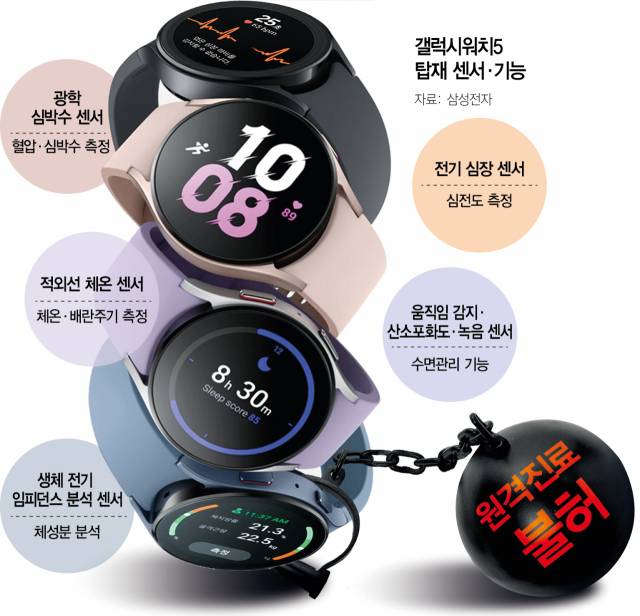 앞으로 미국 내 갤럭시 워치 사용자들은 부정맥 질환인 심방세동의 위험을 미리 파악하고 즉각적인 의료 조치를 받아 위급한 상황을 피할 수 있게 될 것으로 전망된다. 삼성전자(005930) 갤럭시 워치의 불규칙 심장 리듬(부정맥) 알림(IHRN) 기능이 미국 식품의약국(FDA) 승인을 받은 덕이다. 해당 기능은 곧 식품의약품안전처의 허가를 받아 국내에서도 사용이 가능할 것으로 보이지만 원격진료가 금지된 탓에 미국처럼 ‘즉각적 의료 조치’를 받는 것은 불가능하다. 갤럭시 워치의 헬스케어 기능이 나날이 강화되고 있음에도 정작 삼성전자의 안방인 국내에서는 늘 ‘반쪽짜리’로만 활용하는 실정이다.