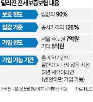 전세보증보험은 집주인이 보증금을 돌려주지 않을 때 보증기관이 돈을 내주고 차후에 구상권을 행사하는 제도다. 정부는 이달 1일부터 세입자가 보증보험에 가입하기 위한 요건을 강화했다. 빌라 가격을 산정할 때 공시가격 반영 비율을 150%에서 140%로 낮추고, 전세가율을 100%에서 90%로 내렸다. 이렇게 되면 전세보증금이 공시가격의 126% 이내에 들어야만 보증 가입이 가능해진다. 예컨대 공시가격이 1억원짜리 빌라라면 기존에는 보증금 1억5000만원까지 보증 가입이 됐다. 이제는 보증금이 1억2600만원 이하여야 가능하다. 최대 한도는 서울·수도권이 7억원, 나머지 지역이 5억원이다.