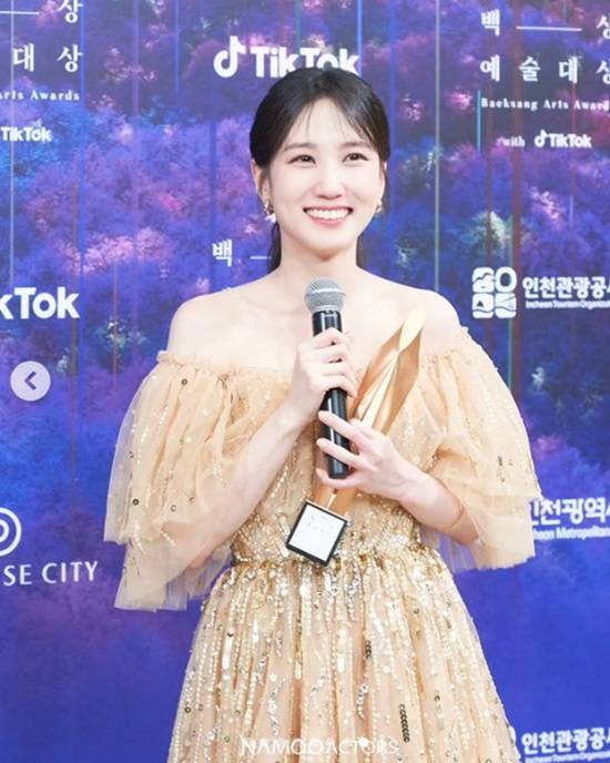 그는 게시물에 소속사 나무엑터스를 태그, 소속사에서 촬영한 것으로 보이는 사진들을 대방출했다. 우아하면서도 러블리한 매력이 돋보이는 오프숄더 드레스를 착용한 박은빈이 레드카펫을 밟을 때의 모습부터 대상 수상 후 기념 사진 촬영 순간까지 다양한 모습들이 포착돼 시선을 끌었다.