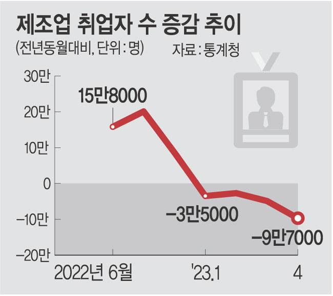 '양질의 일자리'로 꼽히는 제조업 취업자 수가 2년 4개월 만에 최대 낙폭을 기록하는 등 고용의 질이 갈수록 나빠지고 있다.