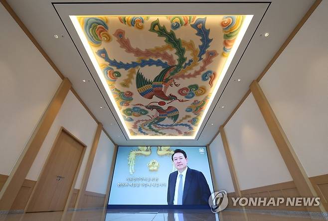 (서울=연합뉴스) 임헌정 기자 = 윤석열 대통령이 10일 취임 1주년을 맞았다. 사진은 리모델링 공사가 끝난 대통령실 청사 정현관 내부. 2023.5.10