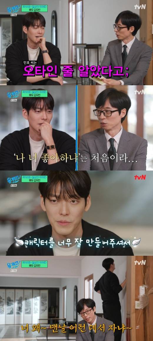 10일 오후 방송된 케이블채널 tvN '유 퀴즈 온 더 블럭'에는 김우빈이 출연해 유재석, 조세호와 다양한 이야기를 나눴다.