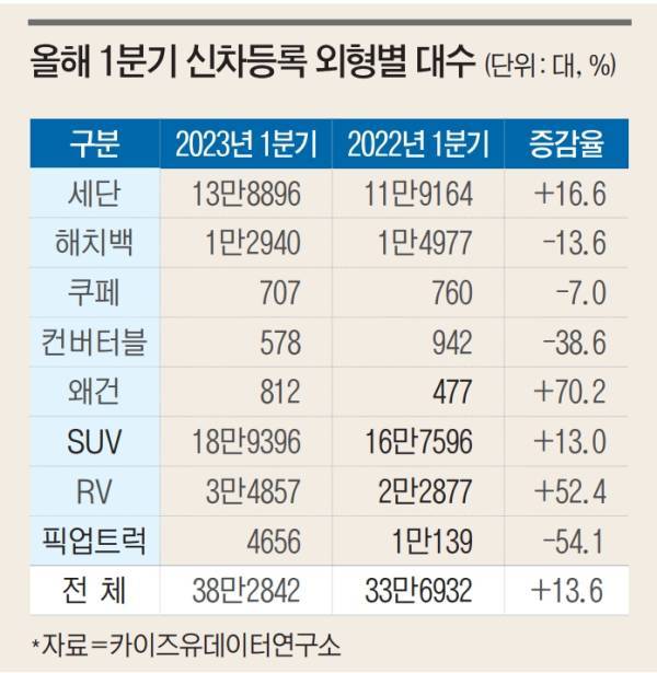 같은 기간 세단은 13만8896대가 신규 등록돼 36.3%의 점유율에 그쳤다.