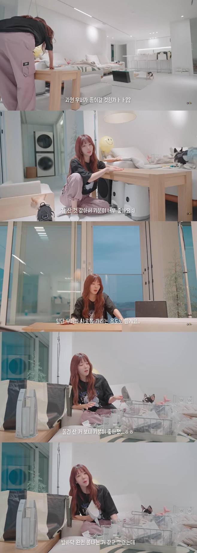 쇼핑을 마치고 집으로 돌아온 초아. 초아는 새하얀 화이트 인테리어의 한강뷰 하우스에 가구들을 놓기 시작했다. 침대 옆 우퍼들을 가리기 위해 긴 벤치를 놓은 초아. 위에 화분을 놓았지만 생각보다 예쁘지 않아 실망했다. 초아는 "생각보다 안 예뻐서 사료통 가리는 용도로 쓰겠다. 그냥 벤치로 써도 된다"며 의자에 앉아 한강뷰를 바라봤다.