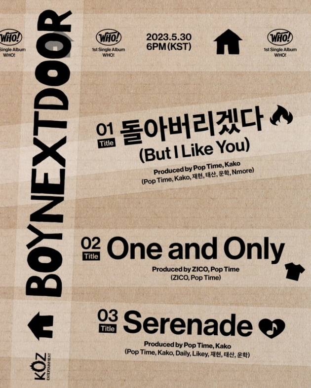 오는 30일 데뷔하는 보이넥스트도어는 하이브와 KOZ 엔터테인먼트가 함께 제작하는 6인조 보이 그룹이다. 팀명에는 또래 친구들이 공감할 수 있는 일상의 이야기를 솔직한 음악으로 표현해 꾸밈없고 편안하게 다가가겠다는 뜻을 담았다.