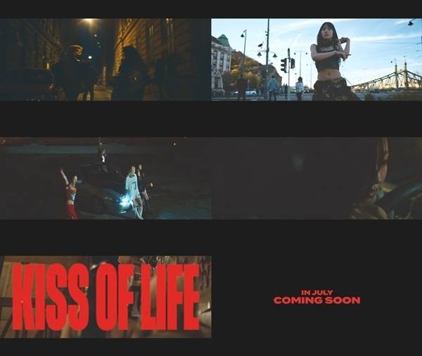 영상 말미에 ‘COUNTDOWN’, ‘KITTY CAT’, ‘SUGARCOAT’, ‘PLAY LOVE GAMES’ 등의 타이포 문구가 궁금증을 높였고 이와 함께 그룹명인 ‘KISS OF LIFE’가 최초 공개됐다.