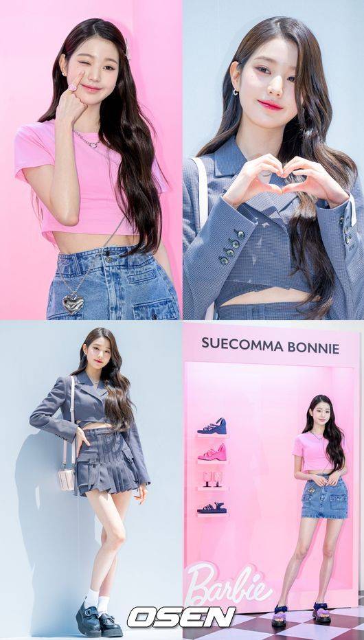 핑크 크롭티와 청치마 조합에 하트 목걸이, 리본 핀으로 y2k를 적절하게 활용한 장원영은 특유의 귀여움과 큐트함을 그대로 살렸다.