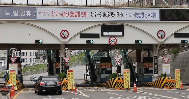 3월 17일부터 1달간은 외곽(강남)방향을, 4월 17일부터는 도심과 외곽 양방향 모두 면제했습니다.