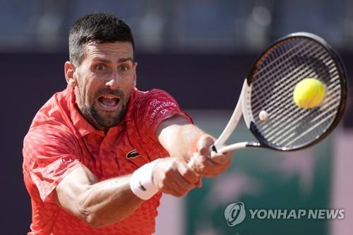 Novak Djocovic returns the ball to Grigor Dimitrov at the Italian Open tennis tournament, in Rome, Sunday, May 14, 2023. (AP Photo/Andrew Medichini)