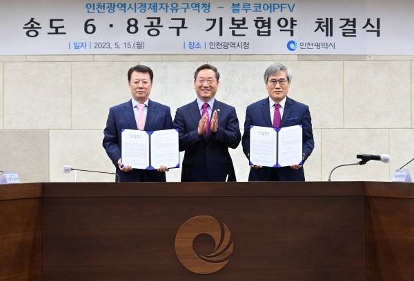 인천경제자유구역청(IFEZ)은 15일 송도 6·8공구 중심부 개발사업의 우선협상대상자인 ㈜블루코어PFV(이하 블루코어)와 기본협약을 체결했다. 지난해 3월 시 투자유치기획위원회를 통과한 협상안을 놓고 지난해 9월 우선협상대상자와 추가 협상에 착수해 8개월여 만에 타결한 것.