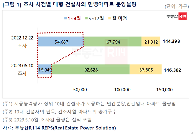 미분양 리스크가 높아짐에 따라 대형건설사들이 줄줄이 분양 일정을 연기하고 있다. 올들어 4월까지 10대 건설사의 분양실적이 작년 말 계획 대비 70% 이상 감소한 것으로 나타났다. 공사비 상승과 금리 인상, 미분양 리스크 등이 맞물리면서 연초에 집중됐던 분양 일정이 줄줄이 연기된 것으로 풀이된다.