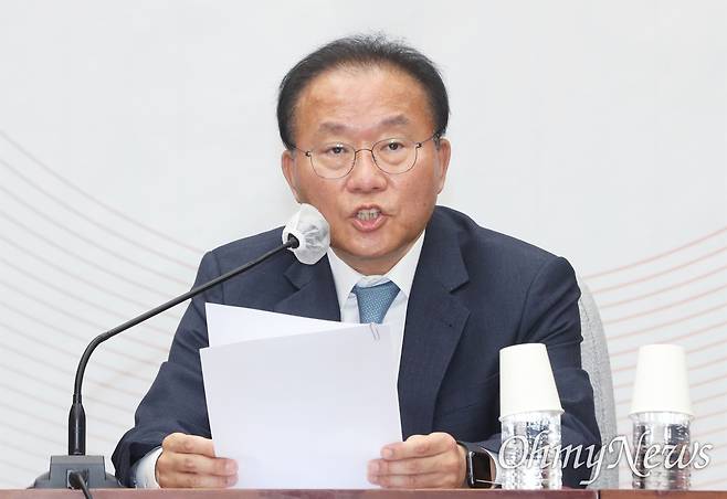 | ▲ 윤재옥 국민의힘 원내대표가 16일 서울 여의도 국회에서 열린 원내대책회의에서 발언하고 있다. |