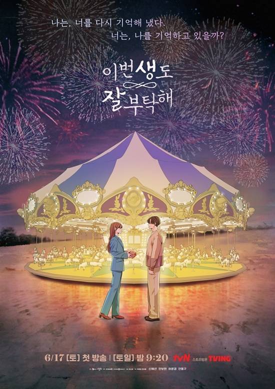 이 가운데 공개된 ‘이번 생도 잘 부탁해’의 메인 포스터는 인생 19회차 삶에서 다시 만난 반지음(신혜선 분)-문서하(안보현)의 재회의 설렘을 담았다. 환생한 반지음은 회전목마 앞에 서 있는 문서하에게 다가가고 있는데 이날만을 기다렸다는 듯 문서하를 따스하게 바라보고 있고, 문서하의 눈에서는 설렘과 벅참이 느껴진다. 특히 반지음이 건네는 보석함이 이목을 집중시킨다. 두 사람을 이어주는 중요 매개체로 보석함에 담긴 둘만의 소중한 기억은 무엇일지 호기심을 자극한다. 또한 “나는, 너를 기억해 냈다. 너는, 나를 기억하고 있을까?”라는 카피와 함께 회전목마 배경의 동화 속 판타지 로맨스 같은 분위기가 설렘과 여운을 배가시킨다.