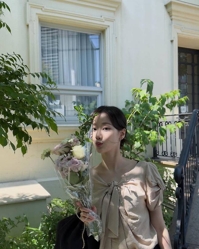 꽃에 밀리지 않는 이나은의 청초한 미모가 감탄을 자아낸다.