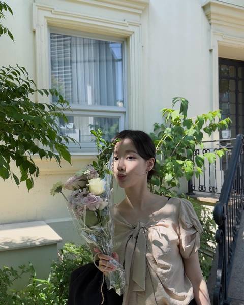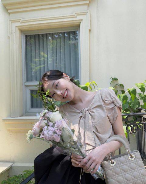꽃다발을 들고 한 건물 앞에서 찍은 사진이다. 베이지색 블라우스 차림의 이나은이 입술을 쭉 내민 채 귀여운 표정을 짓고 있다. 또 다른 사진에선 옆을 바라보며 고혹적인 눈빛을 보내고 있다. 고개를 옆으로 기울인 채 환하게 웃음을 터뜨리는 사진도 공개한 이나은이다.