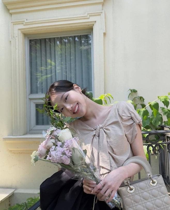 게재한 사진에는 그가 꽃을 들고 있는 모습이 담겼다.
