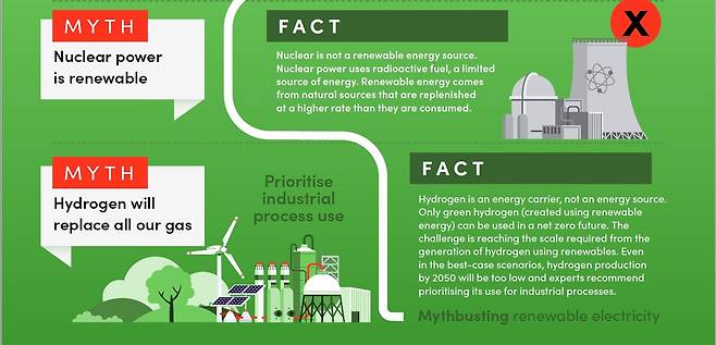 | ▲ RE100에서 재생에너지 관련 수많은 오해를 쉽게 이해할 수 있도록 설명한 홍보물을 내놓았습니다. |