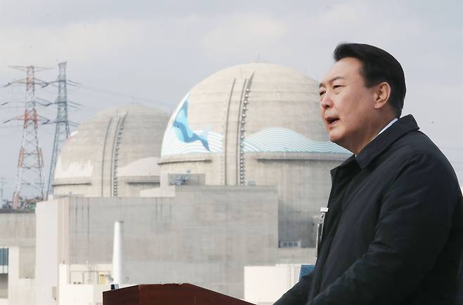 | ▲ 2021년 12월 29일 당시 국민의힘 윤석열 대선 후보가 경북 울진군 신한울 3·4호기 건설중단 현장을 방문해 탈원전 정책 전면 재검토와 신한울 3·4호기 건설 즉각 재개 등 원자력 공약을 발표하고 있다. |