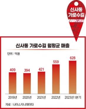 코로나19 팬데믹(세계적 유행)에도 가로수길 상권의 매출은 늘었다. 가게는 문을 닫았지만 ‘의료 서비스’가 전체 상권을 이끌었다. 코로나19 사태로 재택을 하고 마스크를 쓰면서 이 기간 보톡스·필러 등 미용 목적의 소비가 크게 늘었다. 나이스지니데이타에 따르면 가로수길의 2023년 1분기 월평균 매출액은 628억원으로 2018년(395억원)과 비교해 2배 가까이 늘었다. 의료 매출(2023년 1분기)이 절반 가까이 됐다.