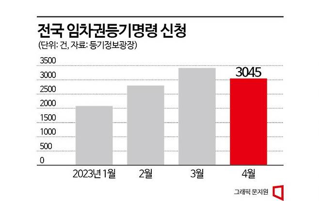 전국 임차권등기명령 신청 건수가 두 달 연속 3000건을 넘어선 것으로 나타났다. 최근 전셋값 하락과 전세사기 등의 여파로 보증금을 제때 돌려받지 못하는 세입자가 늘었기 때문인 것으로 풀이된다.