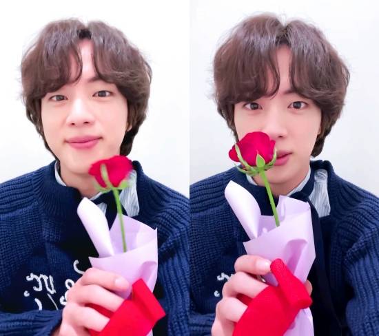 방탄소년단(BTS) 진이 로즈 데이에 팬들에게 안부인사를 전했다.