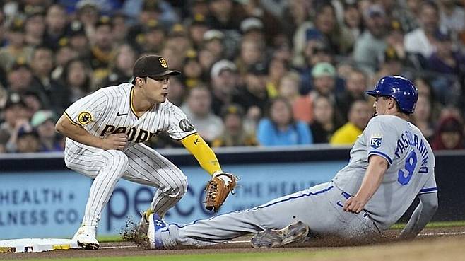 김하성은 오늘(17일) 미국 캘리포니아주 샌디에이고 펫코 파크에서 열린 2023 MLB 캔자스시티 로열스와 홈 경기에 7번 타자 3루수로 선발 출전해 3타수 무안타 1타점을 남겼습니다.