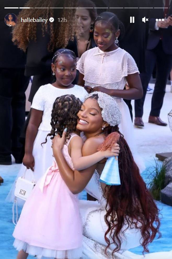 특유의 아우라로 프리미어 시사회를 빛낸 할리 베일리는 행사에 참석한 어린 팬들을 향한 진심 어린 애정을 드러냈다. 그는 아이들과 '찐한 포옹'을 하며 환하게 웃는가 하면, 눈 높이를 맞춘 채 다정하게 대화를 나눴다.