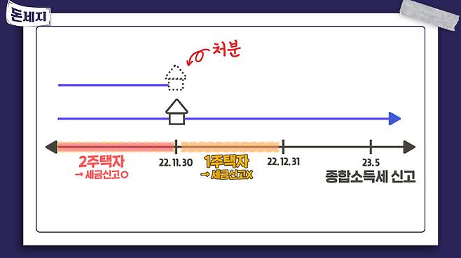 ◇ 김수영> 그러면 (기존에 2주택자였는데 2022년) 11월 30일에 (주택 1개를) 팔았으면 (22년 11월 31일부터는 1주택자가 되는데 이 경우 종소세 신고는) 어떻게 돼요?